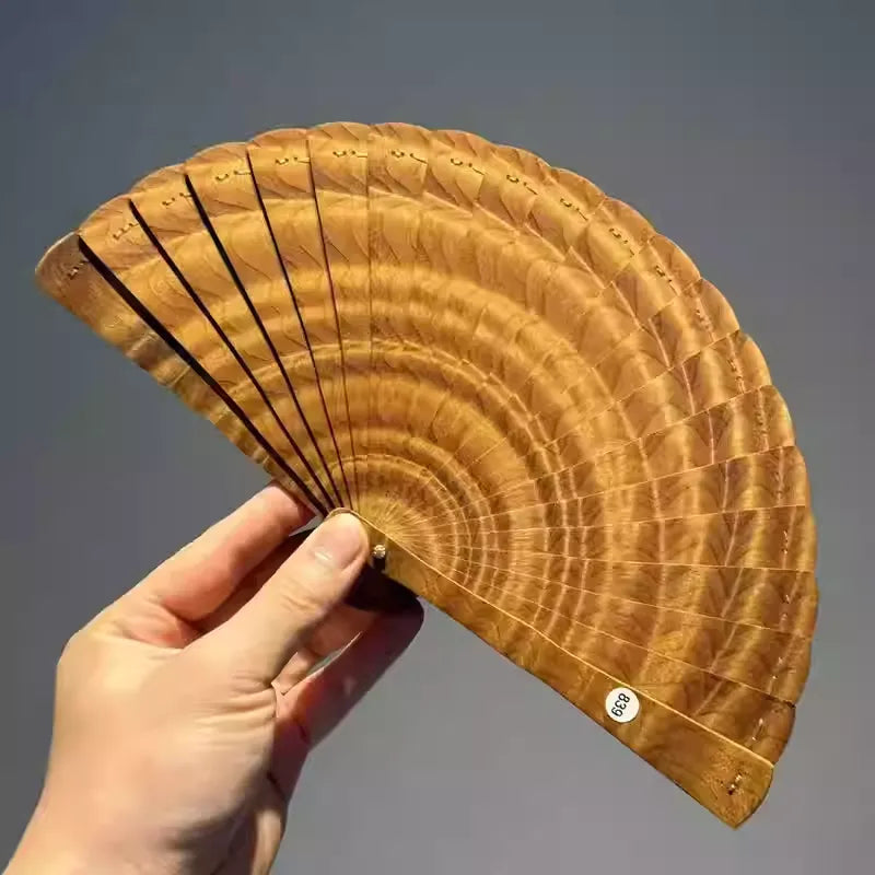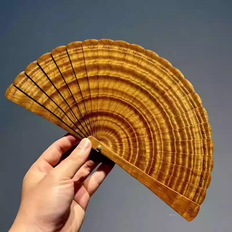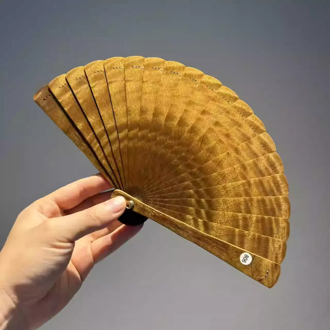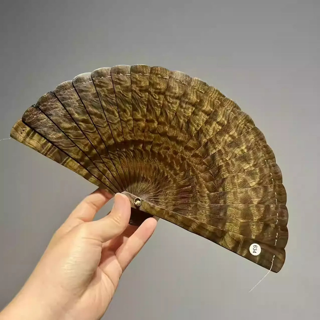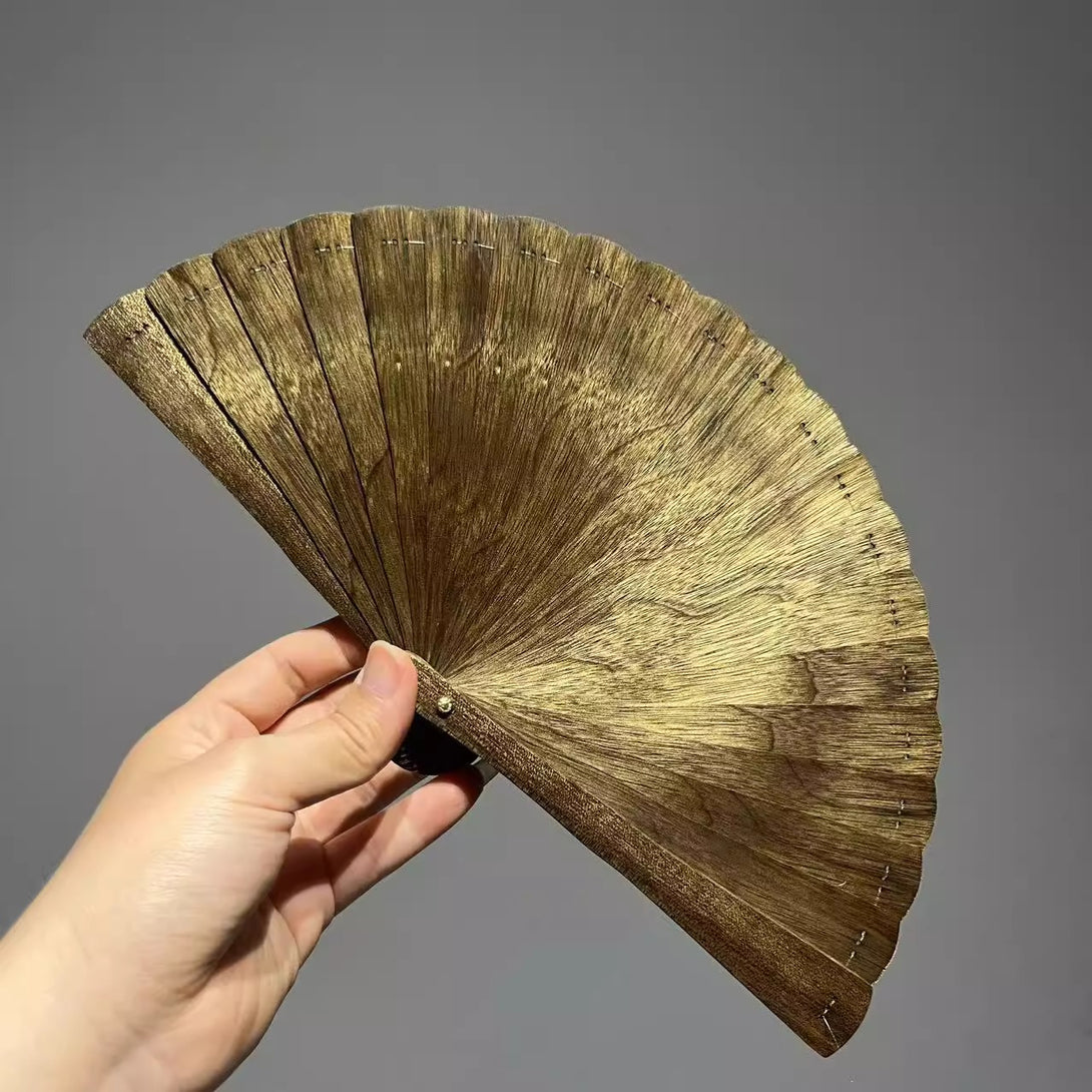Golden nanmu fan ancient style folding fan Su fan portable 15cm small size 16 summer daily use black gold old material