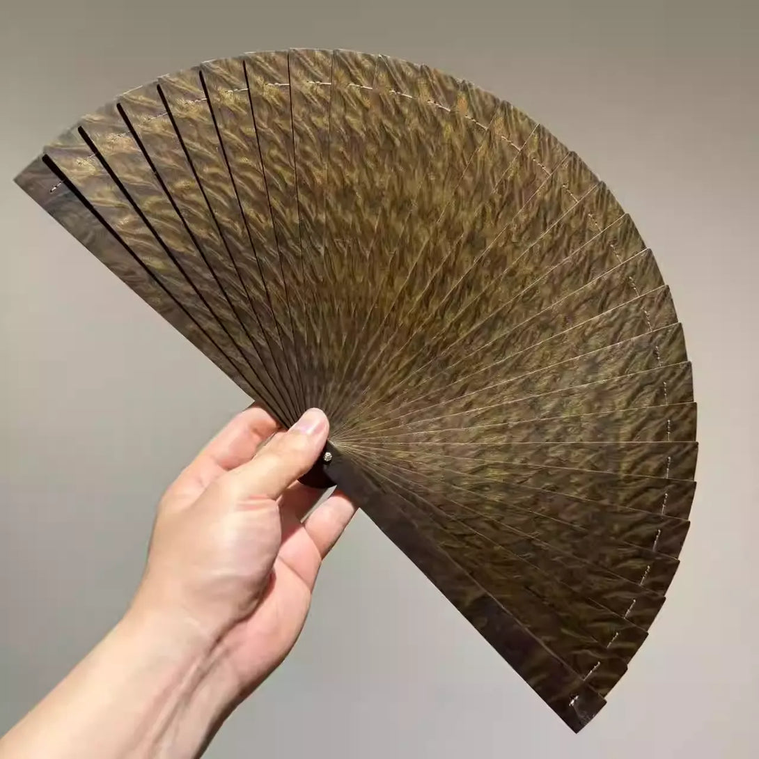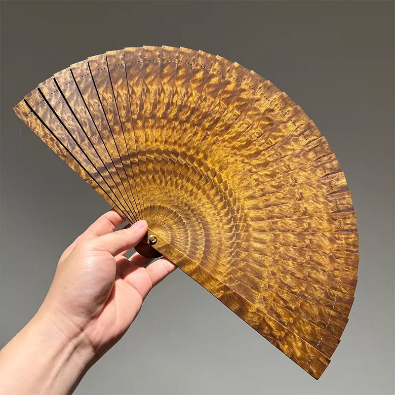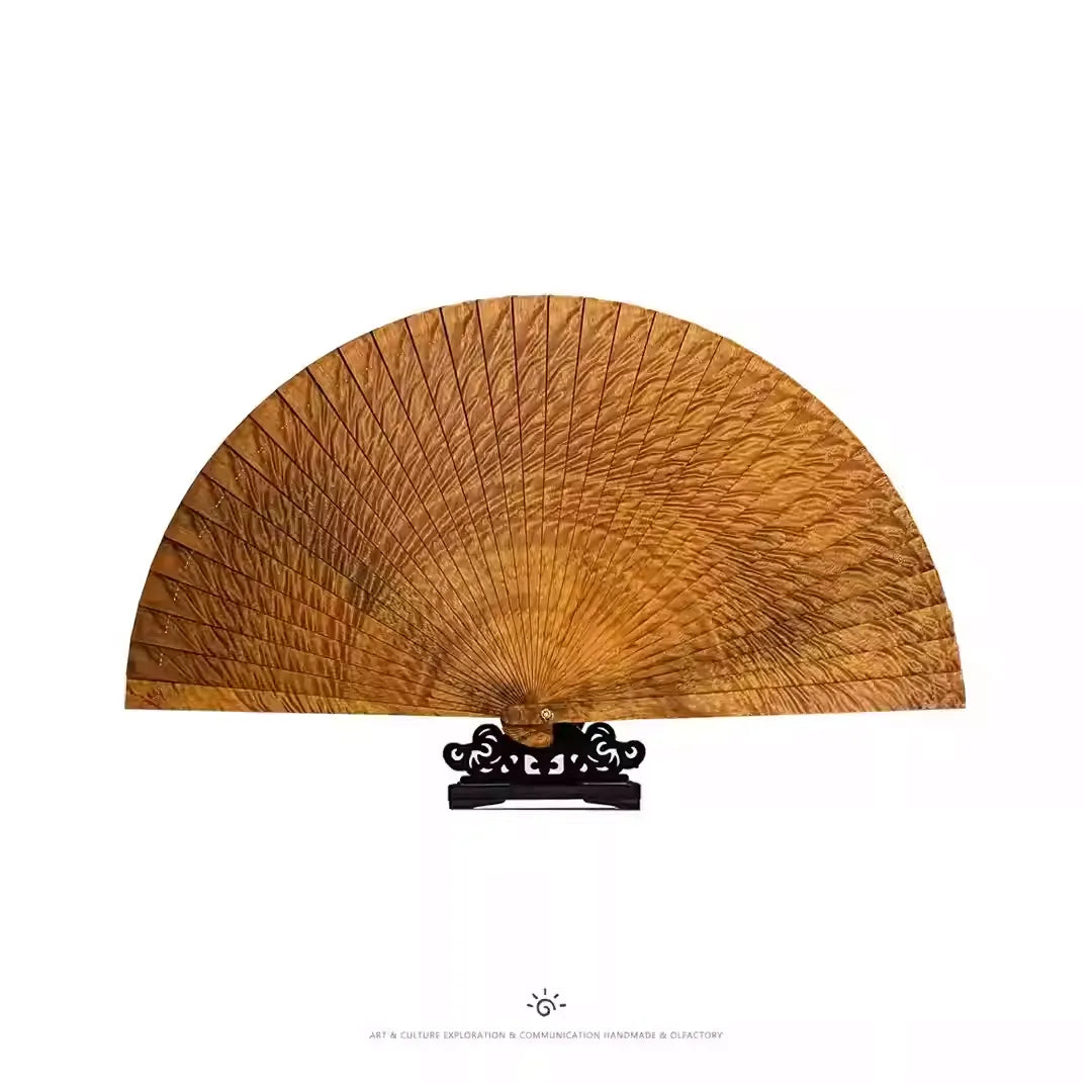 High-end golden nanmu Su fan gloomy ebony Chinese fan retro daily craft fan fragrant wood gift box folding fan